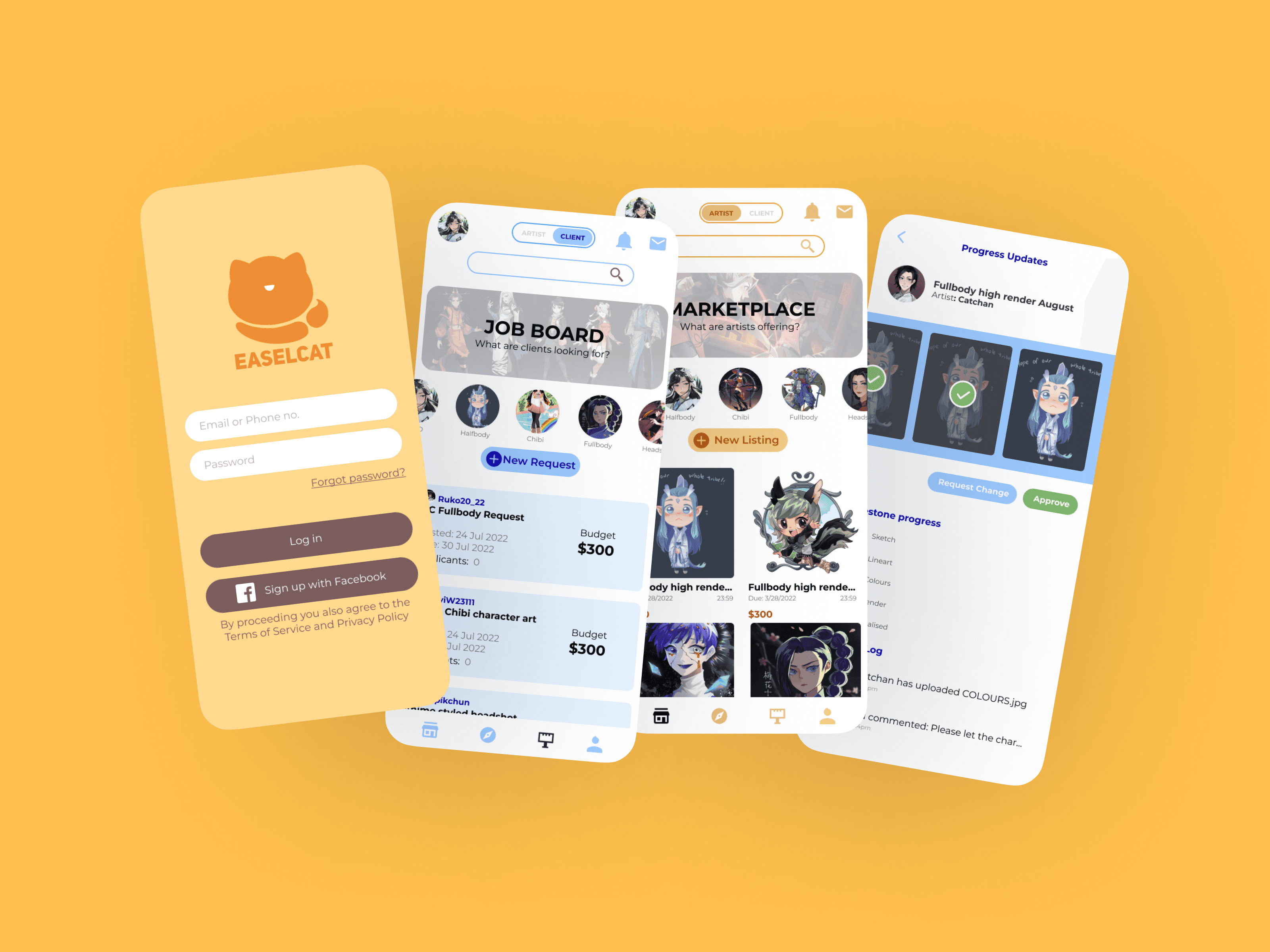 Through the survey, we realised that what this community lack is a dedicated platform that bridges effective communication and discovery between the seller (Artists) and buyer (Clients) parties. There was a demand to have a dedicated and recognised platform for clients to find their ideal artist to commission, while relieving the administrative workload off artists’ shoulders so they can focus on creation instead. EaselCat’s creation is meant to solve these issues