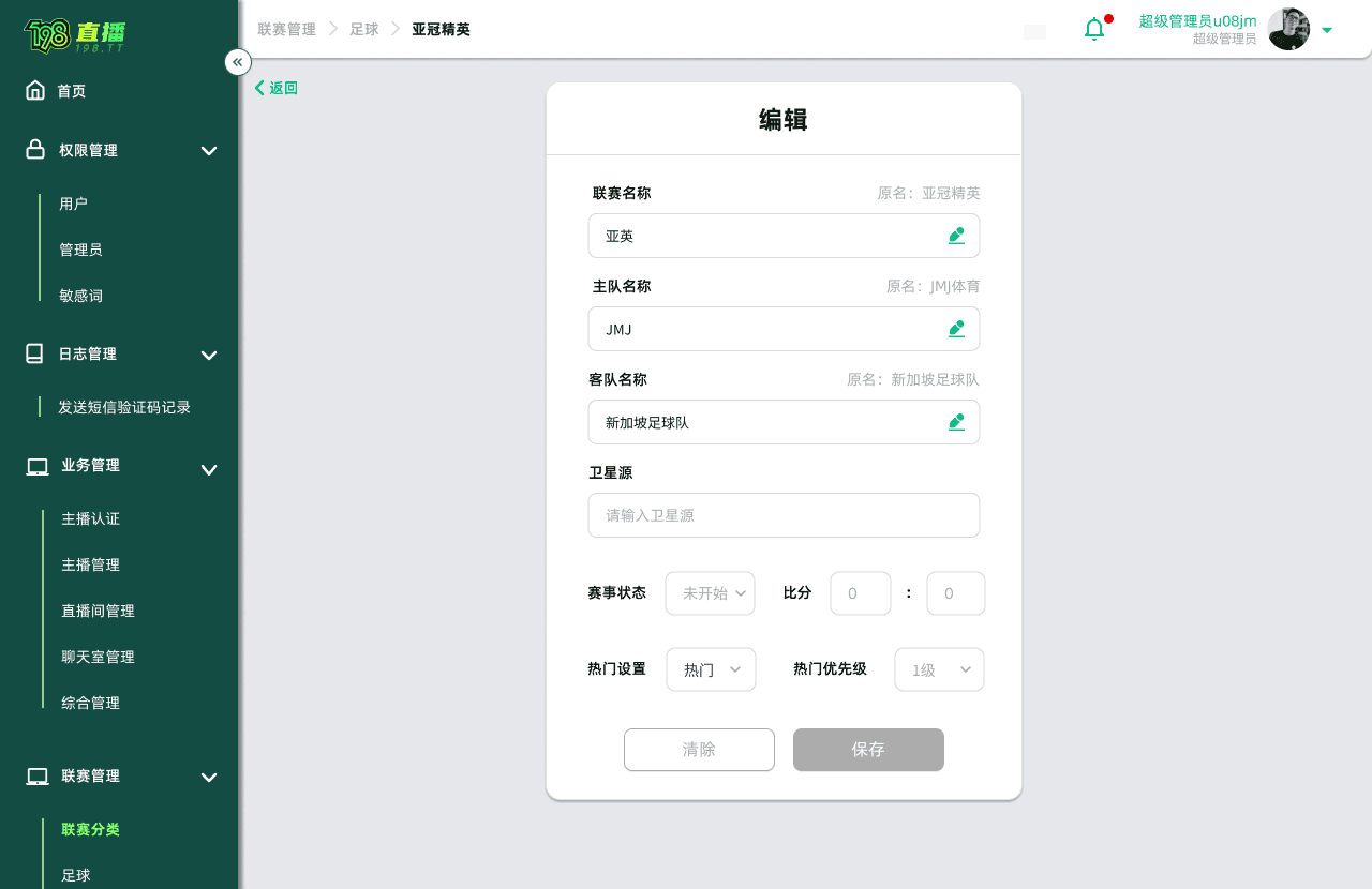 This project is a specialised back office for 198 Zhibo, an upcoming sports streaming website.
