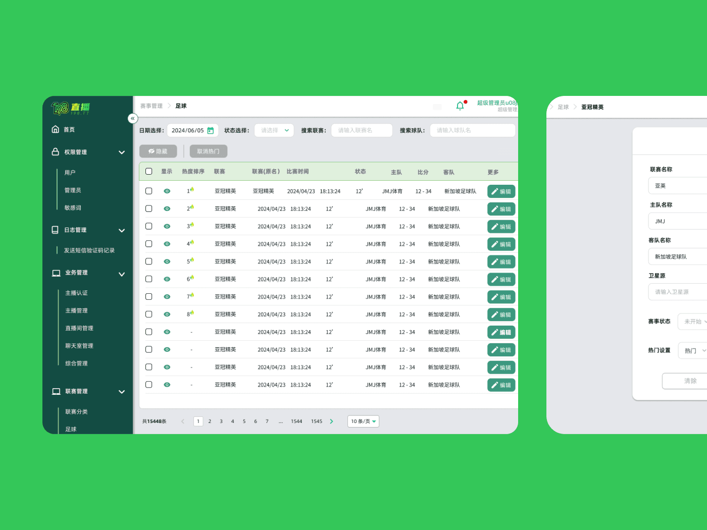 As a new platform dedicated to sports competitions, the back office requires tailored features to support the management of streamers and ongoing events. My role is to work closely with product managers to design an efficient back office system for internal staff and administrators. I designed for both mobile and PC views to ensure seamless usability across devices.