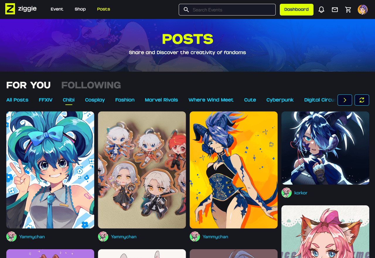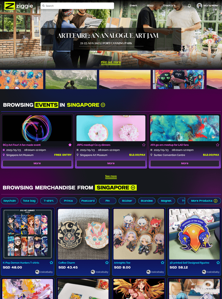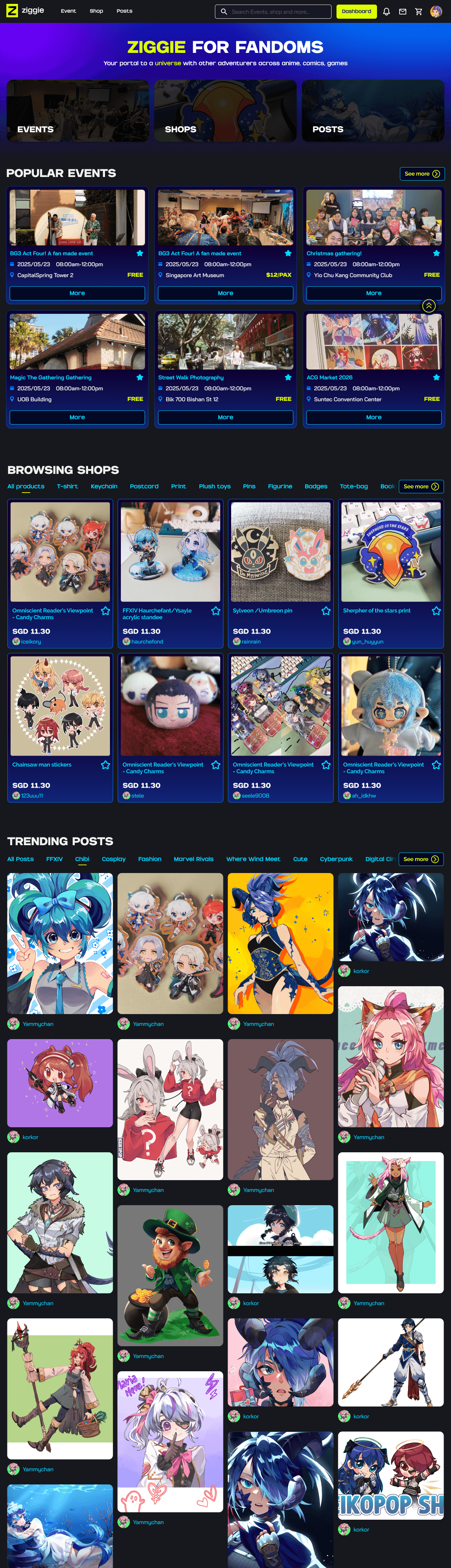 Ziggie is a cross-functional platform that aspires to revolutionise the way fans interact and engage online with people of the same interest. Many ACG (Anime, Comics and Games) fans are passionate about their fandoms and wear that identity as a source of pride. They find belonging in meeting other fans. Ziggie’s vision is hence to become the platform to allow fans across the globe to discover creators, artists as well as each other.